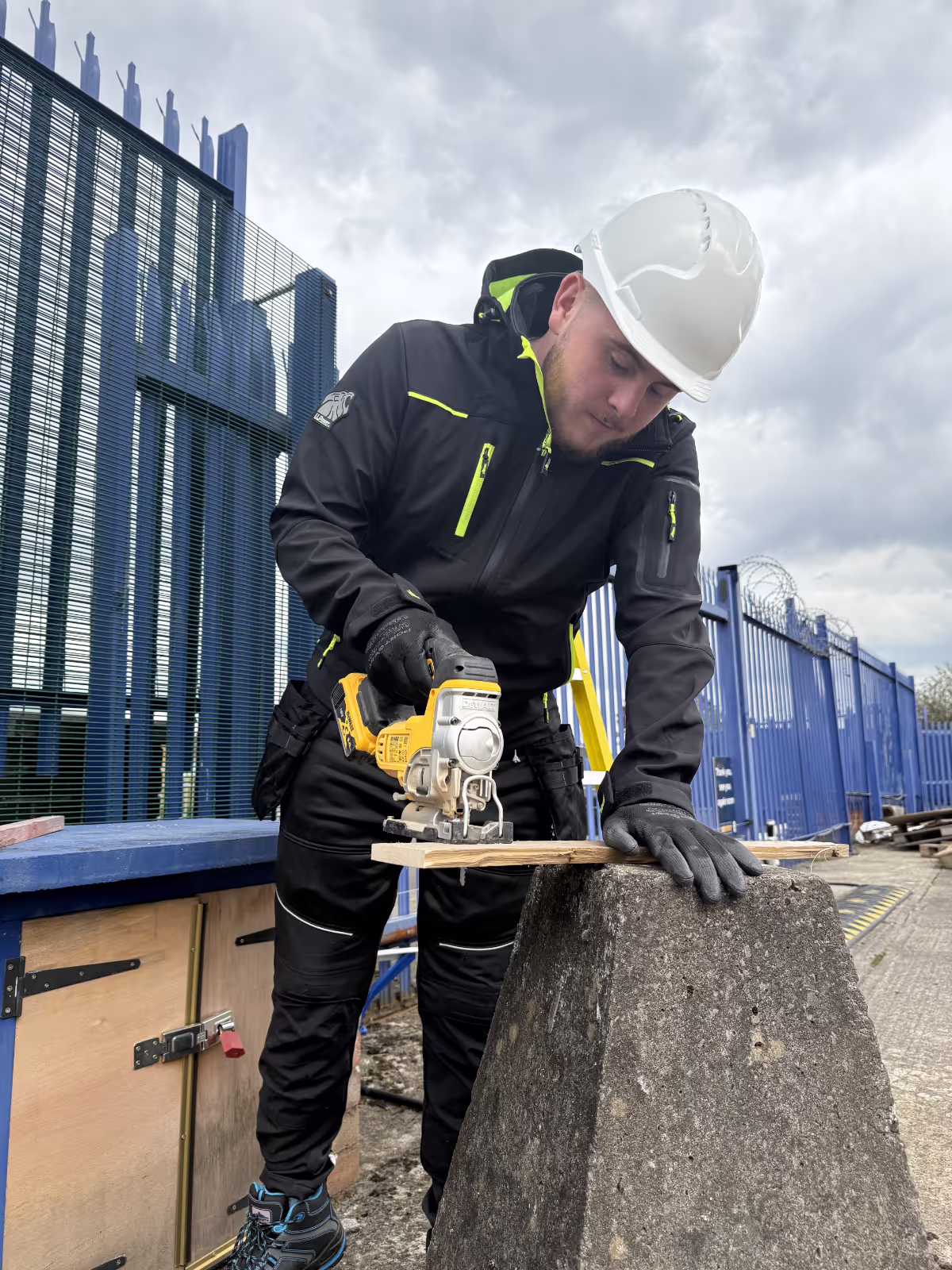 - Carpentry: Fire doors, door replacements, emergency boarding, ironmongery, timber repairs, access hatches, repairs to bars, gates, and fencing.